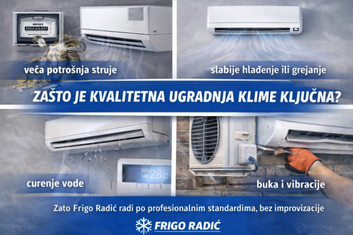 Mnogi problemi sa klima uređajima ne nastaju zbog samog uređaja, već zbog loše ili nestručne montaže. Nepravilno postavljena klima može dovesti do: