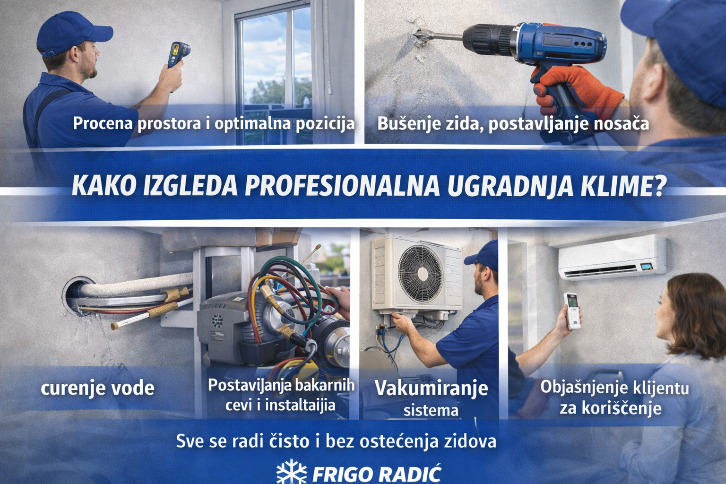 Zato u Frigo Radiću svaku ugradnju radimo po profesionalnim standardima i u skladu sa preporukama proizvođača, bez improvizacije.